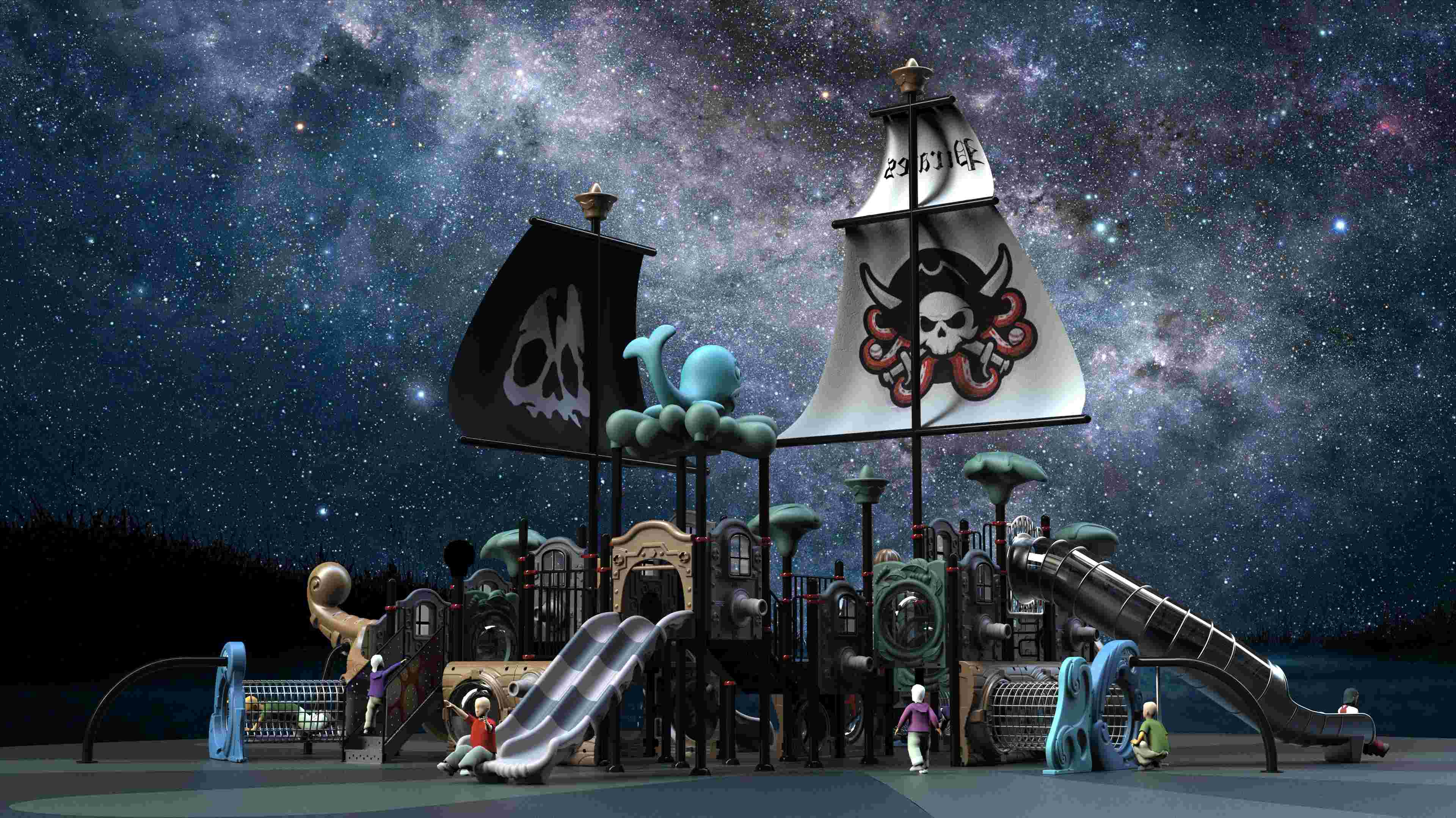 滑滑梯 户外游乐设备 海盗船渲染系列中套组合儿童户外幼儿园小区公园娱乐